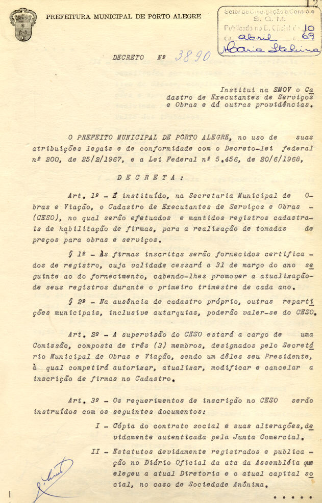 Decreto municipal nº 3.890, de 08 de abril de 1969